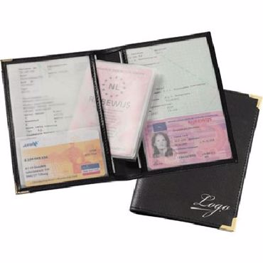 Portefeuille papier/auto en matière synthétique, avec coins de protection dorés.