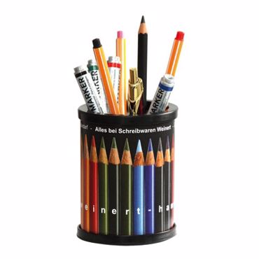 est un pot à crayon rond que l'on peut personnaliser avec insert papier imprimé en quadri.
