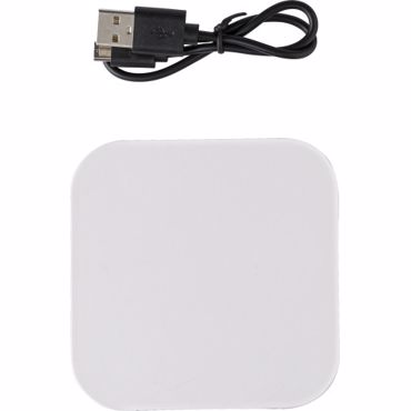 Chargeur à induction et power bank en ABS, inclus un câble de charge.