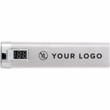 Power bank en aluminium équipé d'une batterie Li-ion d'une capacité de 2200 mAh, une entrée de 5V 500 mA, et une sortie de 5V 1A, inclus un câble USB/Micro USB (approx. 32 cm.)