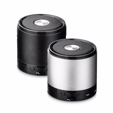 Haut-parleur bluetooth en métal dans une boîte cadeau. Paramètres: Puissance 3 W, bluetooth 2'1 d‘atteinte de 10 m, capacité de l‘accumulateur 400 mAh, durée du rechargement 1–2 h, durée de la production 2–3 h, microphone incorporé pour les conférences et appels téléphoniques, télécommande sur le haut-parleur. Compatible avec tous appareils avec bluetooth, possibilité de la connexion par un câble audio. Câble USB/Micro USB et Jack/Jack câble sont inclus. boîte 70 x 110 x 76 mm