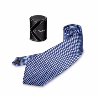 Cravate pour homme en soie, dans une boîte cadeau en cuir imité avec fermeture magnétique. boîte ø83 x 107 mm