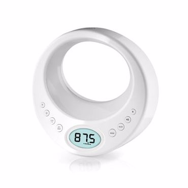 Radio Réveil progressif, réveil progressif par la lumière, par radio ou par sons de la nature, lampe de chevet, éclairage fixe ou par couleurs changeantes, 10 stations FM programmables, fonction haut parleur pour MP3, fonction rappel sonnerie (livré avec adaptateur),