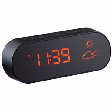 Radio réveil station météo Radio-réveil FM station météo, réveil par radio ou buzzer, recherche digitale des stations, contrôle digital du volume, prévisions météo, hygromètre et thermomètre, réserve en cas de coupure de courant