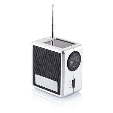 Radio avec double alimentation, solaire et dynamo, (important en cas d?urgence!), de couleur argent avec haut-parleur noir, sélection des stations et haut-parleur haute qualité, antenne télescopique, emballé dans une boîte en carton XD Eco.