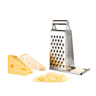 Râpe inox 4 faces, pour émincer et râper plus ou moins finement toutes sortes d?ingrédients, récupérateur à glissière, compatible lave- vaisselle.