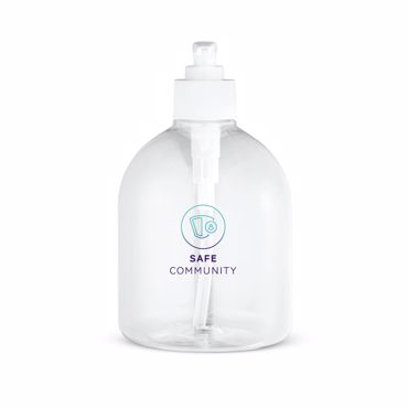 Flacon avec doseur en PE et PP, d'une capacité allant jusqu'à 500 ml. Flacon rechargeable et réutilisable. Vendu sans liquide à l’intérieur. ø85 x 150 mm