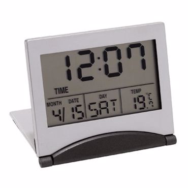 Réveil de voyage LCD ""Aster"" avec thermomètre, compte à rebours et affichage de la date emballage cadeau, Pile plate incluse, réveil .