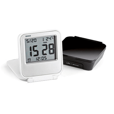 Reveil electronique de voyage, cadran lumineux, calendrier et temperature (2 piles CR2025 incluses) - dim.64x70x20mm