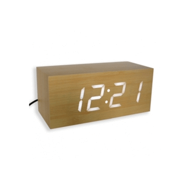 Réveil digital en bois recyclé - Eclairage LED - Fonction réveil et affichage température -Intensité d'éclairage auto-ajusté selon les heures Tous nos tarifs sont des prix import et donc susceptibles de varier ( fluctuation du dollar, coût des matières premières) Nos prix sont donc donnés à titre indicatif et nous vous invitons à nous consulter pour une cotation affinée ou toute modification que vous souhaiteriez apporter au produit Le prix inclus un marquage 1 couleur et un délai de livraison 90 Jours après BAT ( Franco de Port)