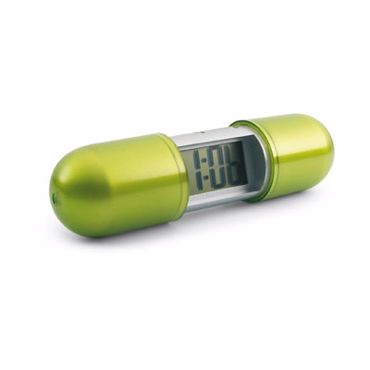 Réveil gélule. Réveil de voyage gélule BEAN C'est non seulement un Réveil de voyage mais aussi une création médicale, inspirée des capsules de gélules. 2 piles bouton incluses.