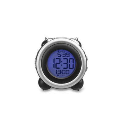 Réveil REFLECTS ZAPALA BLACK SILVER-plastique/métal, noir/argenté, sonnerie d´alarme, Eclairage, CE, cadran LCD, Thermomètre, Horloge, Fonction réveil et alarme répétitive, Fonction réveil, emballage individuel REFLECTS Dim Packaging : 79x112x116 mm