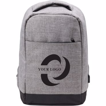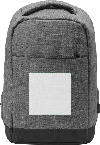 Sac à dos porte-ordinateur de 13'' en polyester 600D comprenant de multiples poches intérieures, une poche extérieure zippée au dos et un port USB latérale avec câble.