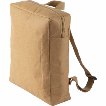 Sac à dos en papier laminé 310 g/m² avec fermeture zippée.