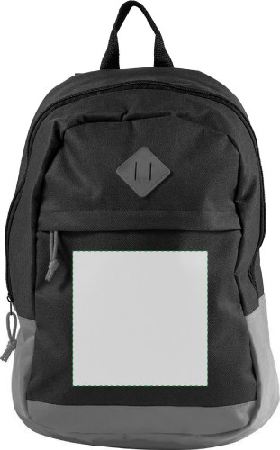 Sac à dos en polyester 600D avec dos matelassé et poche frontale zippée.