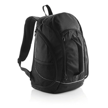 Sac à dos 600D et ripstop, 4 compartiments, pochette téléphone rembourrée, sortie écouteurs et anneau porte-clés, poignée de transport rembourrée, filet à l'arrière.