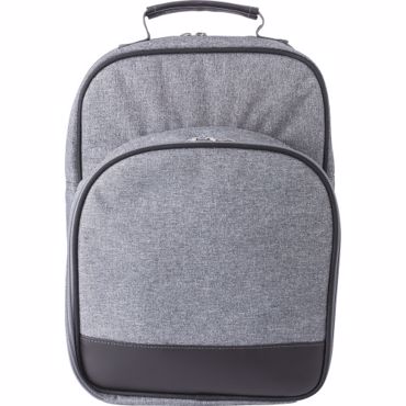Sac à dos pique-nique en polycanvas 600D pour 2 personnes avec compartiment isotherme comprenant assiettes, verres en plastique et couverts.