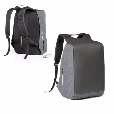 Sac à dos pour ordinateur. 900D d'haute densité et tarpaulin. Système anti-vol: compartiment principal avec zipper caché et partie supérieure avec 2 poches cachées avec zipper, pour plus de sécurité. Compartiment principal rembourré avec 2 divisions matelassées pour ordinateur jusqu'à 10'5''. Plusieurs poches intérieur, incluant poche rembourrée pour smartphone avec accès à une sortie pour écouteurs. Crochets pour organisation des câbles. Poche extérieure latérale avec zipper, avec accès direct à la poche intérieure, idéal pour batterie nomade. Dorsal rembourré et système d'aide matelassé pour le dos. Anses rembourrées avec une poche avec zipper. 320 x 440 x 200 mm