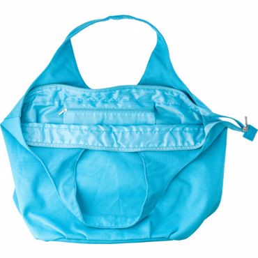 Sac de plage en coton avec poche intérieure et fermeture zippée.