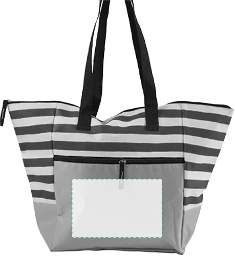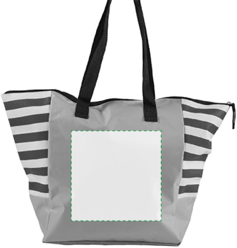Sac de plage zippé en polyester 600D avec poche frontale.