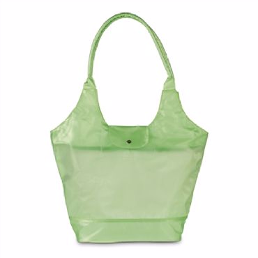 Sac shopping ou de plage en PVC translucide et fermeture par bouton pression.