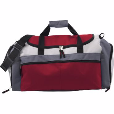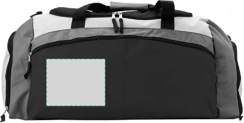 Sac de sport en polyester 600D avec poches latérales et frontales zippées.