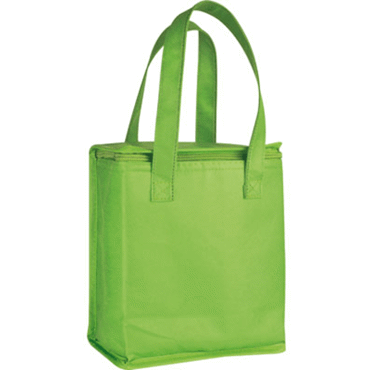 Sac isotherme en non-woven pour 4 bouteilles de 0,5 litre avec poignée. Le marquage se place sur le devant du sac.