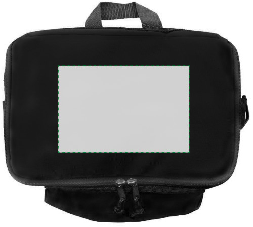 Sac isotherme zippé en polyester 600D avec poche frontale zippée et poches latérales filets.