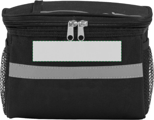 Sac isotherme en polyester 600D adaptable sur le guidon du vélo avec poches latérales filets et poche translucide.