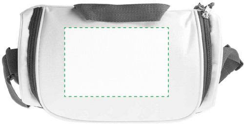 Sac isotherme zippé en polyester 600D muni d'une poche frontale avec fermeture par velcro.