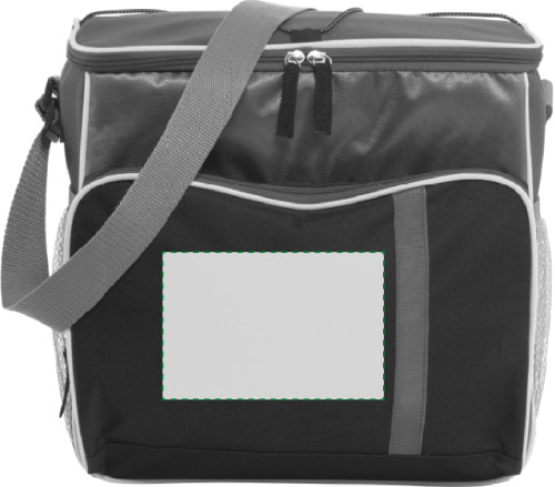 Sac isotherme zippé en polyester 600D avec poche frontale zippée et poches latérales filets.