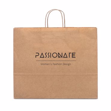 Sac. Papier kraft: 115 g/m². Poignées torsadées. 400 x 340 x 110 mm