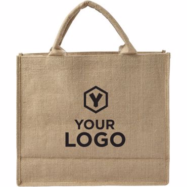 Sac shopping en toile de jute à anses courtes.