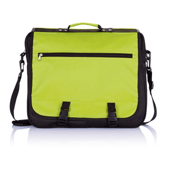1 compartiment à fermeture éclair, 1 poche frontale, 4 porte-stylos, 1 porte-étiquette et bandoulière réglable avec épaulière rembourrée.