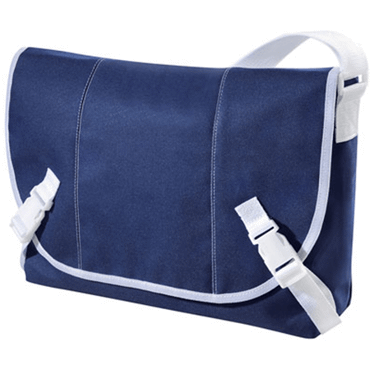 Sacoche.**Matière: Polyester 600d.**2 poches avant et un rangement stylo.**Rabat avec fermeture boucle plastique.**Finitions et bandoulière blanches.**