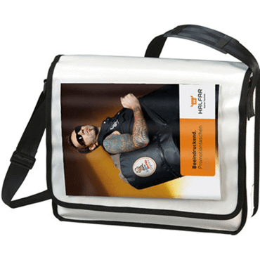 Sacoche.**Matière: Bâche de camion brillant.**Compartiment principal ouvert.**Poche rabat zippé.**Rabat transparent avec fermeture vélcro.**Bandoulière réglable avec épaulette.**Dimensions de l'article: 37 X 29 X 13 cm**