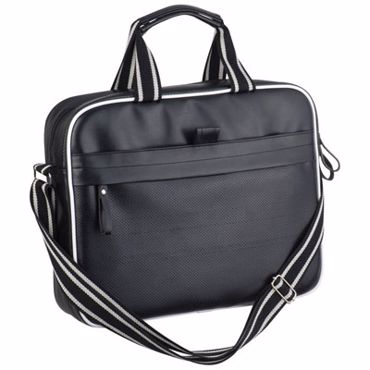 Superbe sacoche porte-ordinateur bicolore noire et blanche munie d'un vaste compartiment central zippé avec rabat, renforcé pour protéger votre portable avec une fermeture scratchée, de multiples poches de rangement intérieures et extérieures. Munie d'une bandoulière amovible et ajustable, d'accroches métalliques et d'un passepoil blanc pour souligner son design.