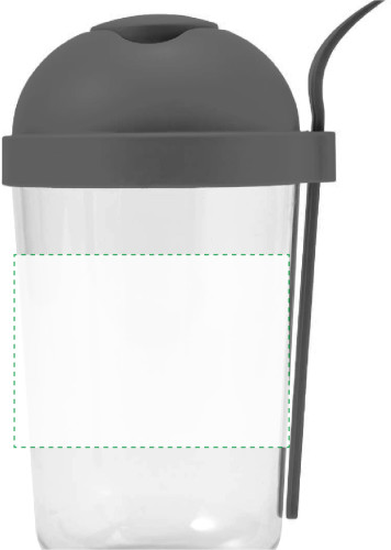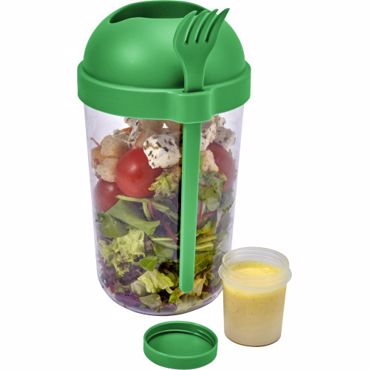 Saladier en plastique d'une contenance de 0,95 l livré avec fourchette et contenant pour assaisonnement.