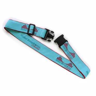 Sangle à bagage fabriquée sur mesure La longueur de la sangle est en principe 1600 * 50 mm, mais nous pouvons suivant vos besoins. La personnalisation se fait par impression du logo, broderie du logo ou transfert numérique en quadri.