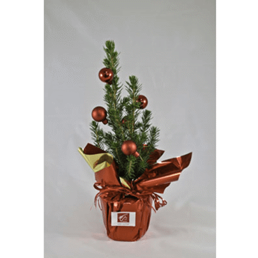 Sapin en pot de 10 cm de diamètre avec déco