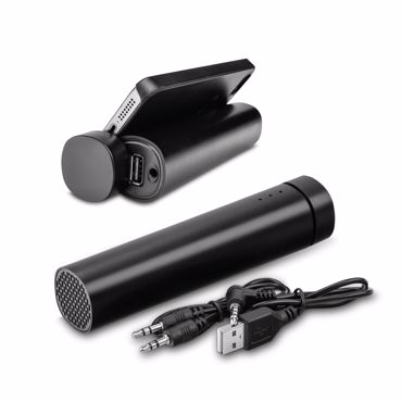 Batterie nomade en plastique avec capacité 3 350 mAh et sortie 3 W. Approprié pour portables, iPhones et tablettes. USB/Jack et Jack/Jack câble sont inclus. ø30 x 132 mm