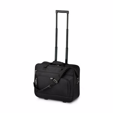 Valise à roulettes en polyester avec manche télescopique en métal et sangle d’épaule, 600D. 1 compartiment et 6 poches de rangement, compartiment ordinateur (15“maxi). 460 x 400 x 185 mm