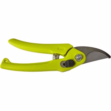 Sécateur en plastique et acier inoxydable avec système de verrouillage.