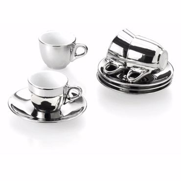 Service à café chromé. Set Expresso 4 tasses Céramique aspect métal. Servez un expresso dans ce superbe set expresso d'aspect métallique