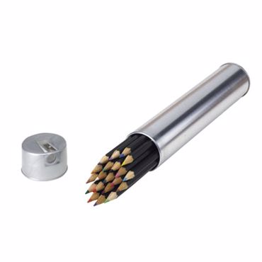 Set 20 crayons de couleur. 20 crayons de couleur dans boîte métal avec taille crayon dans le couvercle