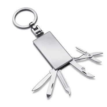 Set à outils avec porte-clés REFLECTS MILAN-métal, argenté, ouvre-boîte, couteau, lime à ongles, Ciseaux à ongles, emballage REFLECTS Dim Packaging : 11x45x129 mm
