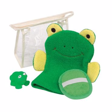 Set bain pour enfant. Set de massage ""Funny frog"" : comprend un gant de massage, une grenouille pour le bain, fleur de bain, dans un sac transparent avec fermeture éclair .