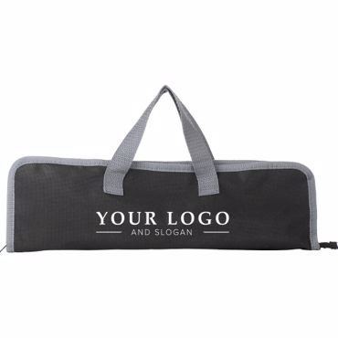 Set barbecue dans un étui zippé en non-tissé comprenant une spatule, une pince et une fourchette à viande.