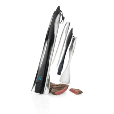 Luxo est un set de 3 outils de barbecue réunis d?une manière intelligente. La spatule en acier inoxydable ainsi que la pince se glissent harmonieusement autour du pinceau en silicone, que l?on peut accrocher au barbecue. Modèle déposé®