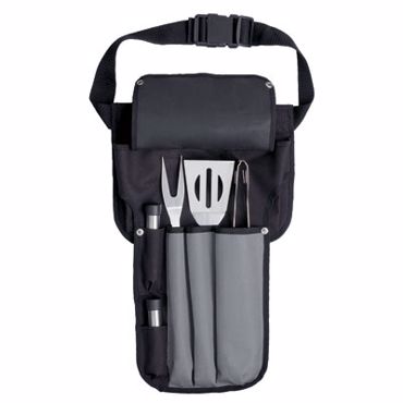 Set BBQ GRILLINATOR En qualité nylon, GRILLINATOR est la sacoche tour de taille spécialement étudiée pour le Barbecue. Composée de 5 pièces, elle comprend: une pince, une spatule, un attendrisseur en acier et aussi une poivrière et une salière.